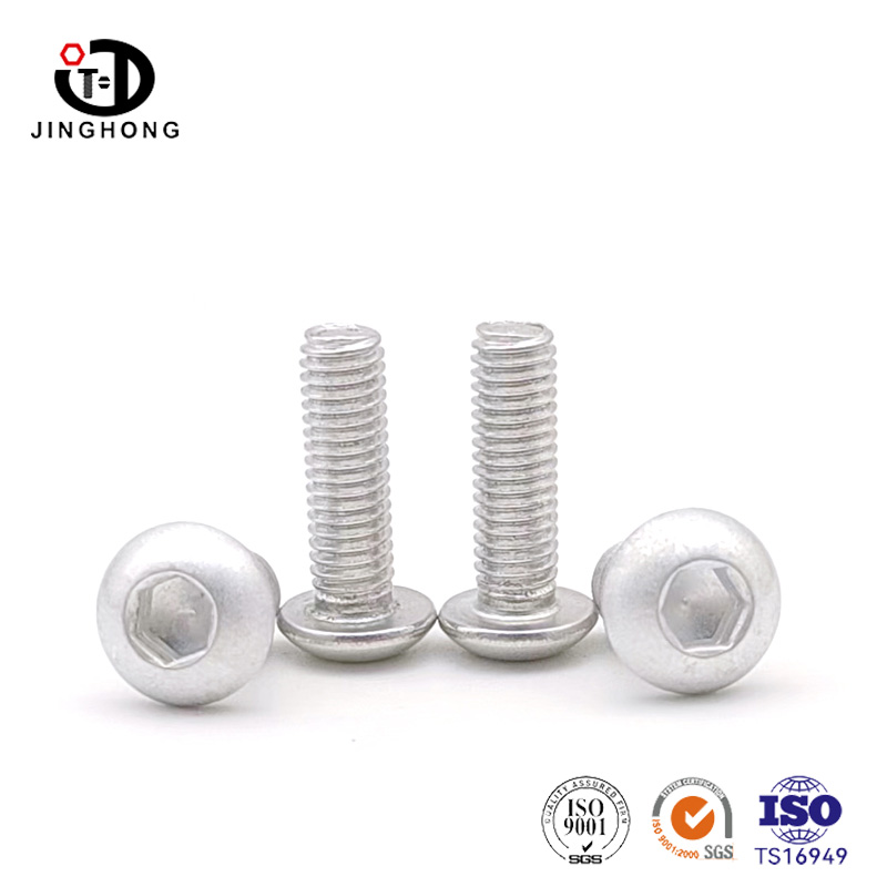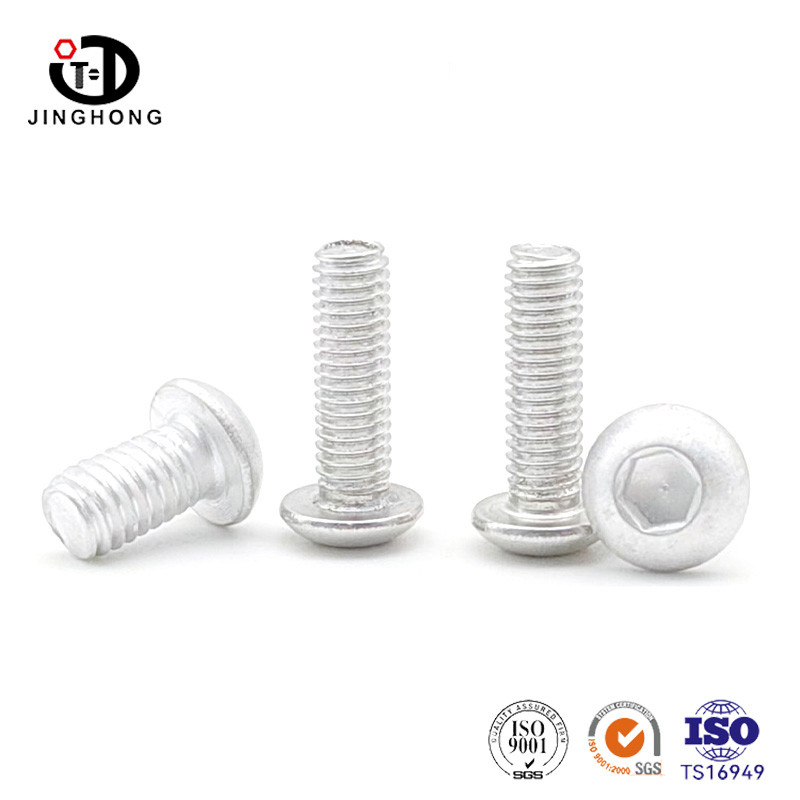 Formen på aluminiumslegeringens hexagonal runde hovedskrue bryder gennem det skarpe design af traditionelle bolte, med en afrundet overflade, der ikke kun passer tæt sammen med stikket, hvilket reducerer risikoen for stresskoncentration, men også reducerer ridser eller skader forårsaget af utilsigtede kollisioner. Den hexagonale rille danner multi-punkts kontakt med den specialiserede skruenøgle, hvilket resulterer i transmissionseffektivitet med høj drejningsmoment.