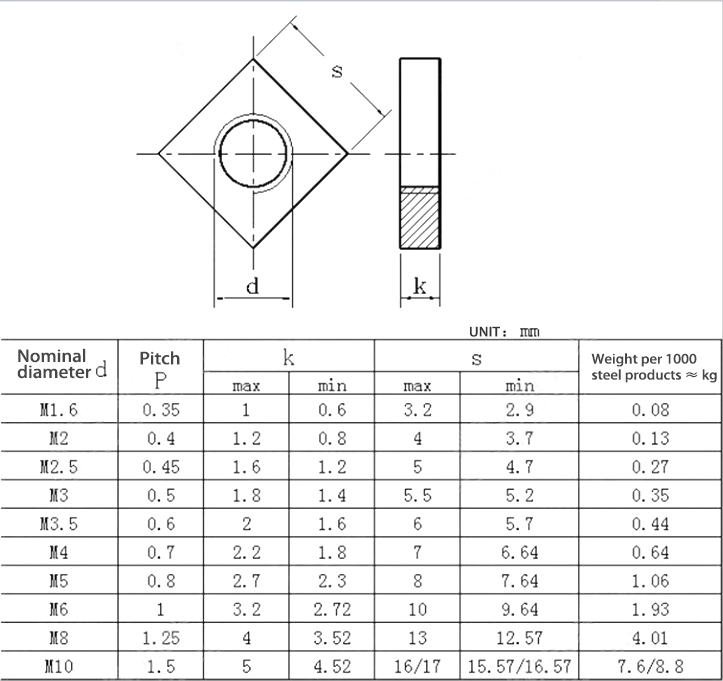 Firkantet møtrik er en slags metalfastgørelsesorganer med en firkant uden for og et lille runde hul i midten. Det bruges til at forbinde og fikse mekaniske komponenter, som normalt matches med bolte. Sammenlignet med andre nødder har firkantet nødder en større overflade til installation, som kan undgå fænomenet løsning og øge leddets pålidelighed og stabilitet. Firkantet møtrik bruges ofte til bygning, maskinfremstilling og bilfelt.