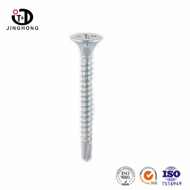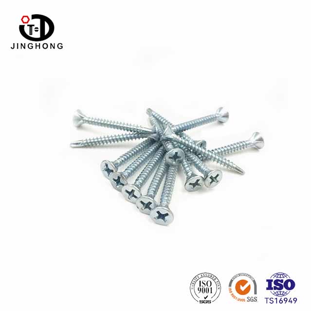 Jinghong -fastgørelseselementer bruger fremragende overfladebehandlingsteknologi, så gipspladen gips -selvboringsskruer har fremragende korrosionsbestandighed, der er egnet til høj luftfugtighed eller ætsende miljø. Det krydsformede design af gipspladen gipsvægs selvboringsskruer giver mulighed for bedre drejningsmomentoverførsel og minimerer muligheden for, at skruetrækkeren glider eller stikker rillerne ud.