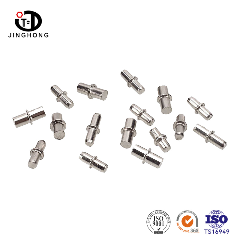Den primære funktion af hyldestøttestiften er at tilvejebringe pålidelige forbindelser. I industrielt udstyr bruges partitioner ofte til at adskille forskellige funktionelle områder for at forhindre lækage eller blanding af væsker, gasser eller andre medier. Partitionsstifter kan fast forbinde partitioner med andre dele af udstyret. Sørg for stabiliteten og forseglingen af partitionen. Uanset om det er i højtryk, høj temperatur eller ætsende miljøer, kan partitionsstifter opretholde deres forbindelsesydelse, hvilket giver stærk støtte til den normale drift af industrielt udstyr.