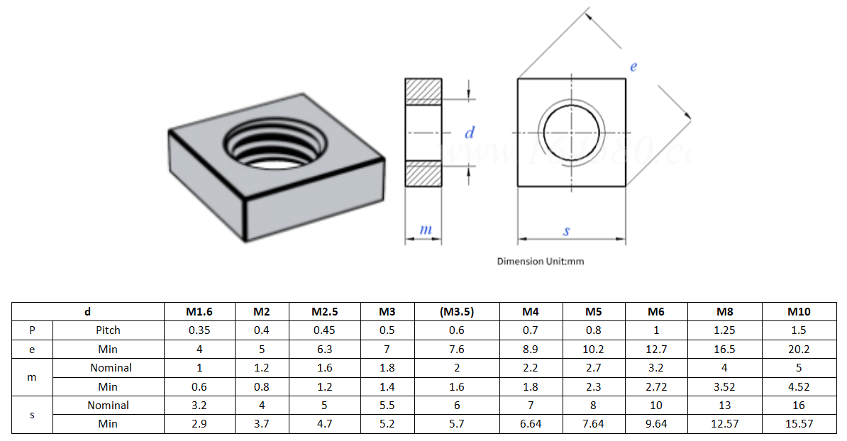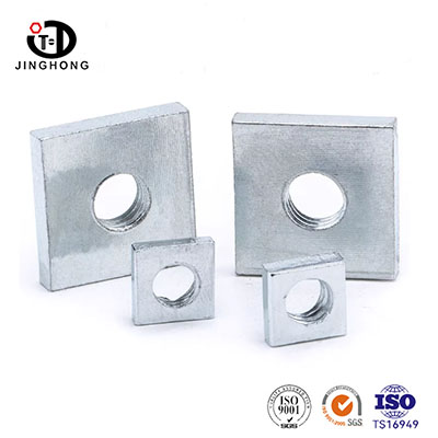 Dette produkt er en tysk standard firkantet tynd møtrik lavet af Q195 kulstofstål, som opfylder DIN 562-2013 B-niveau standarden. Det har karakteristika af tynd tykkelse og kompakt struktur, velegnet til lejligheder med begrænset installationsplads. Produktspecifikationerne dækker M1.6-M10 med fire kvadratiske hjørnedesigns for nem installation. Det er meget brugt i forbindelsesscenarier med strenge tykkelseskrav, såsom metalpladedele, chassisskabe og almindelige strukturelle komponenter.