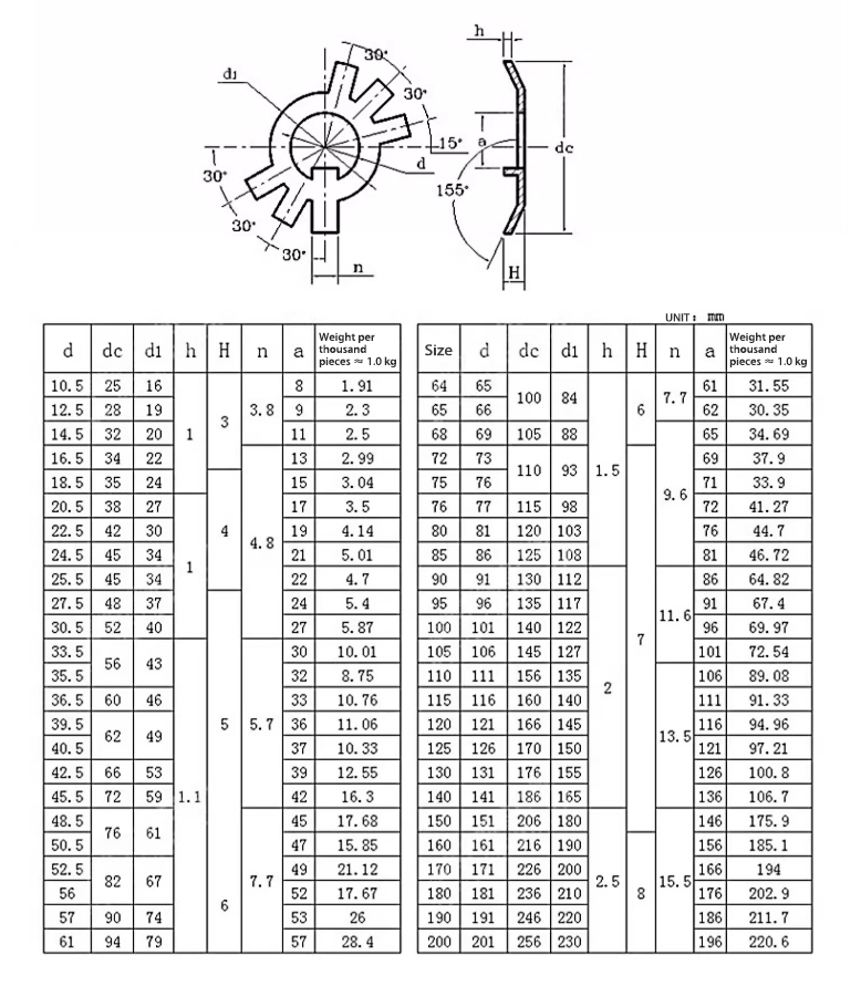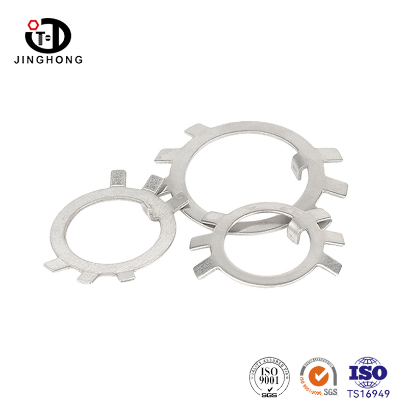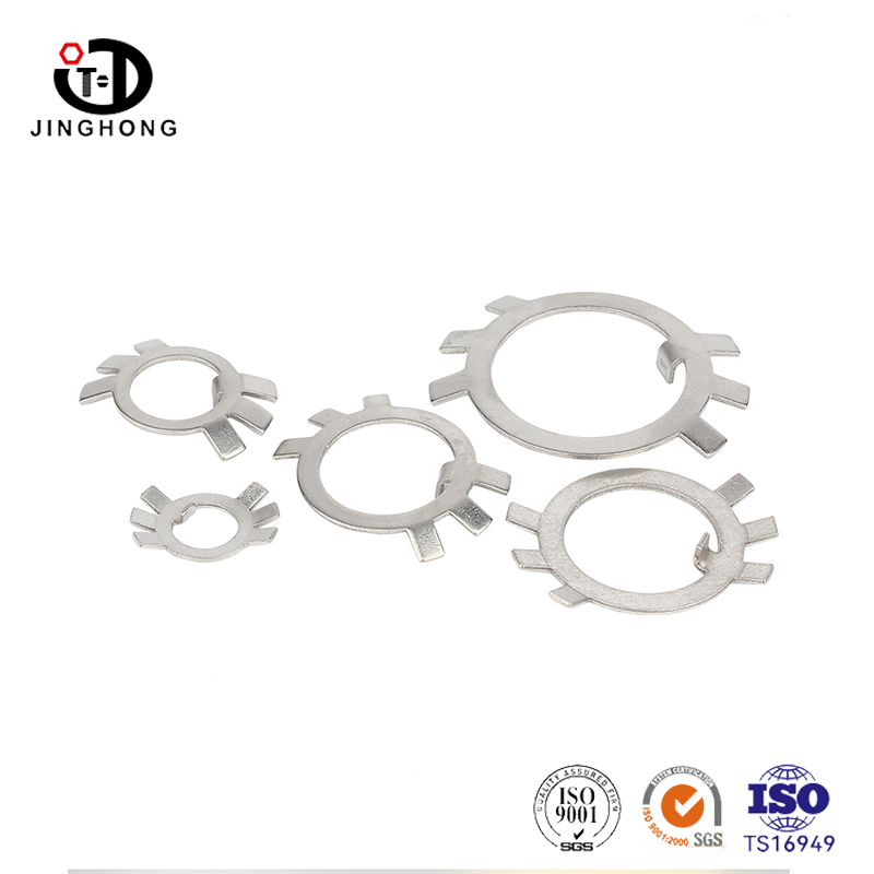 Rustfrit stål tilbageholdelsesskive til runde nødder er et fastgørelsestilbehør, der specifikt bruges til at forhindre nødder i at løsne. Rustfrit stål tilbageholdelsesskive til runde nødder er meget modstandsdygtig over for korrosion og har meget høj styrke. Den serrerede ydre kant af rustfrit stål tilbageholdelsesskive til runde møtrikker skærer ned i den overflade, som samlingen er tilsluttet, og sammen med den runde møtrik forhindrer løsning på grund af vibrationer eller andre kræfter.